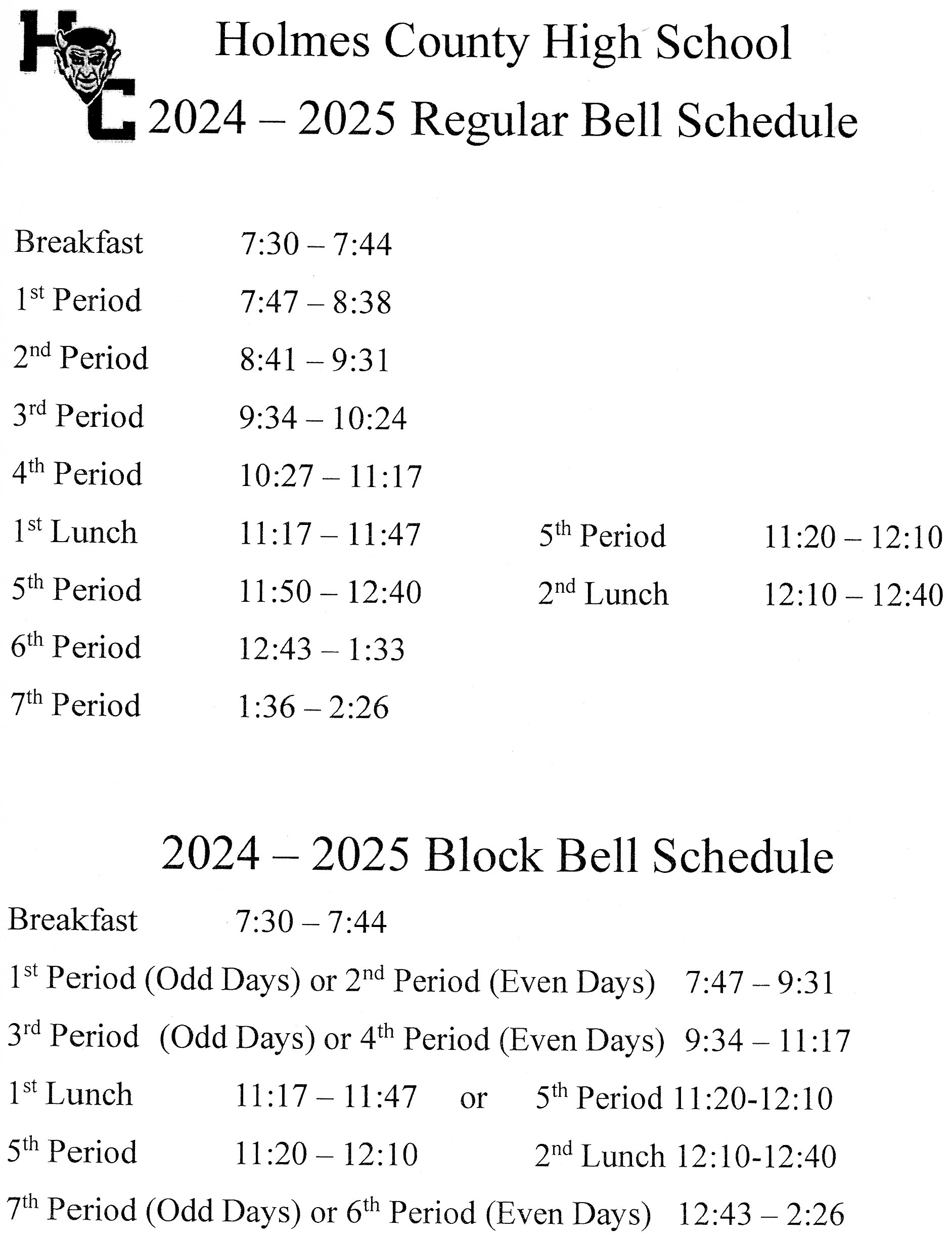 2025-2026 HCHS Bell Schedule